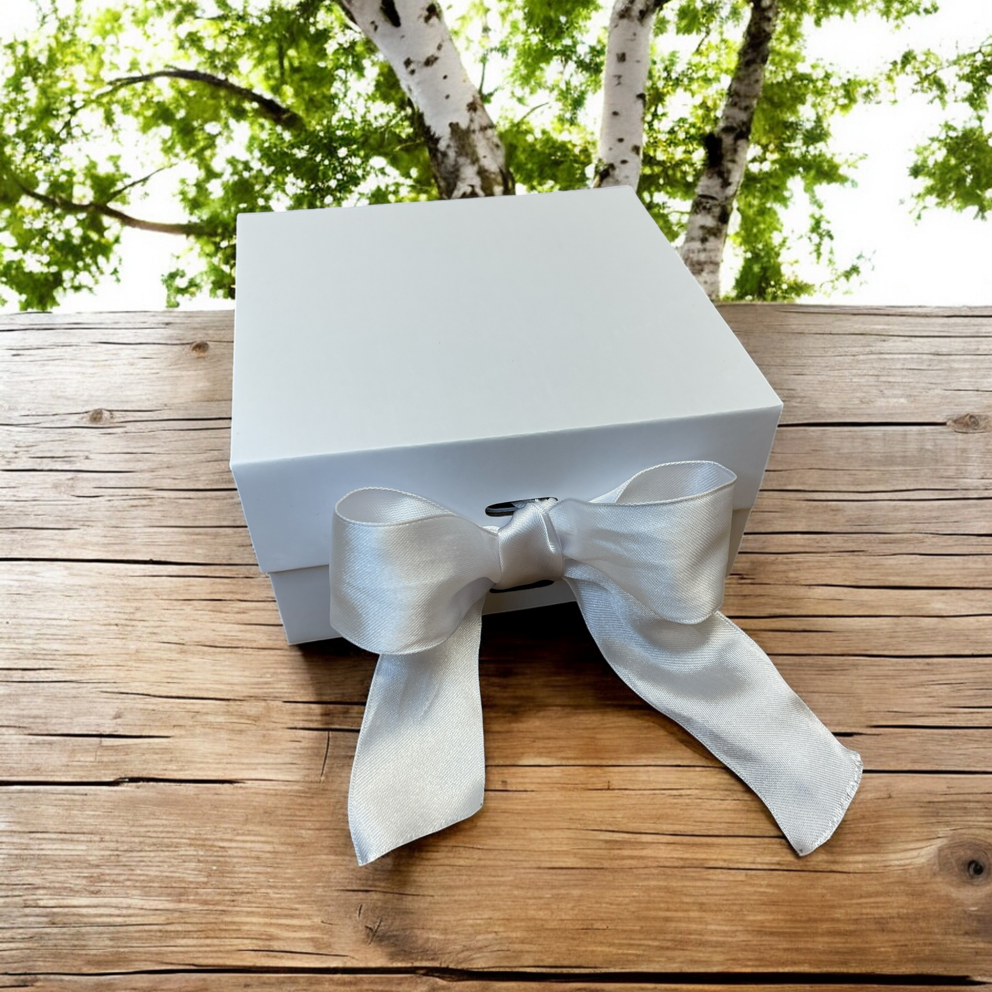 Make your gifts even more delightful with our sturdy white gift box featuring a magnetic closure and a beautiful ribbon. Use it to showcase our luxurious soap and create a perfect gift for any occasion.